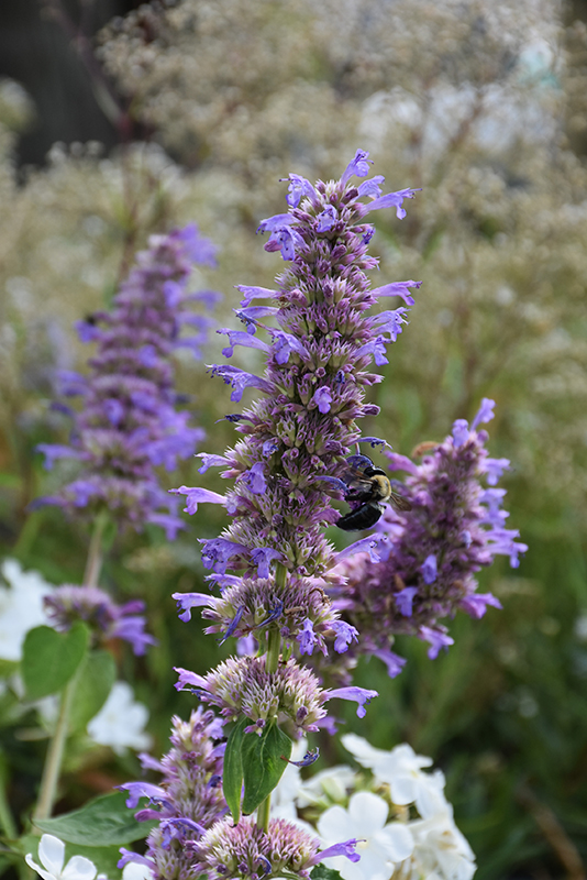 Airy tubular spikes of striking violet-blue flowers complement coarser textured perennials in the garden; attracts hummingbirds and other pollinators; aromatic licorice scented, bronze-green foliage