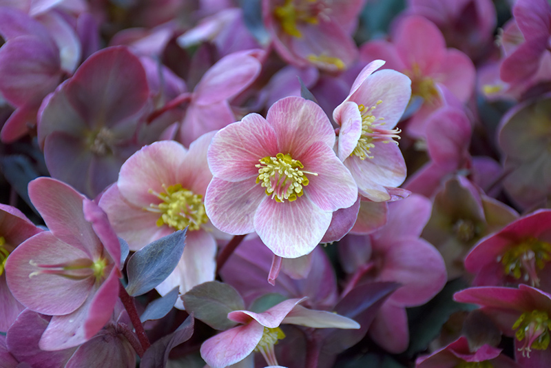 Pink Frost Hellebore will grow to be about 14 inches tall at maturity, with a spread of 24 inches. When grown in masses or used as a bedding plant, individual plants should be spaced approximately 18 inches apart. Its foliage tends to remain dense right to the ground, not requiring facer plants in front. It grows at a medium rate, and under ideal conditions can be expected to live for approximately 5 years. As an evegreen perennial, this plant will typically keep its form and foliage year-round.