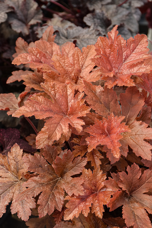 Hopscotch Foamy Bells features dainty spikes of creamy white bell-shaped flowers rising above the foliage from late spring to early summer. The flowers are excellent for cutting. Its attractive crinkled lobed leaves emerge dark red in spring, turning red in color with showy coppery-bronze variegation and tinges of dark green the rest of the year.