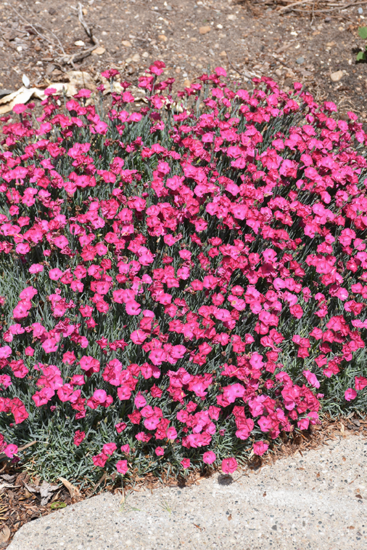 Paint The Town Fancy Pinks is smothered in stunning fragrant rose frilly flowers with fuchsia overtones and red centers at the ends of the stems from early summer to early fall. The flowers are excellent for cutting. Its attractive narrow leaves remain powder blue in color with hints of grayish green throughout the year.