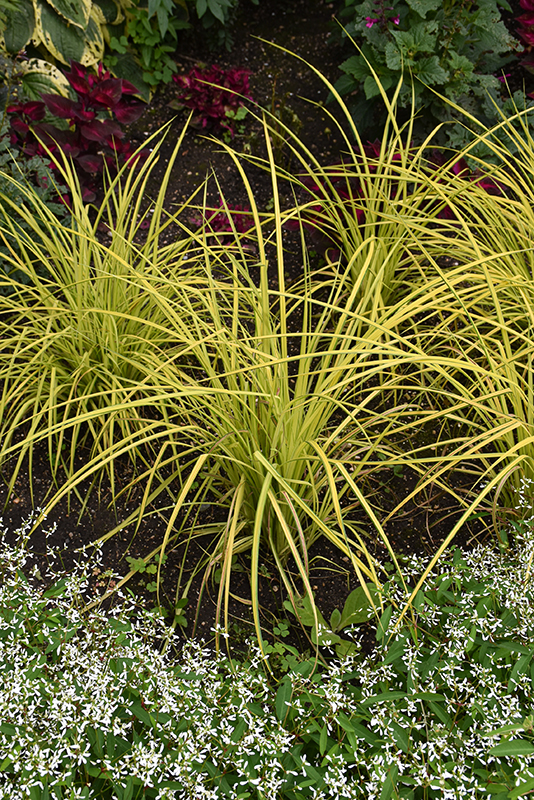 This sedge has spectacular bright gold-yellow foliage with thin green margins and is taller than most others; an excellent choice as a highlight plant for a shade or water garden; moisture loving and needs to be constantly wet or moist to thrive